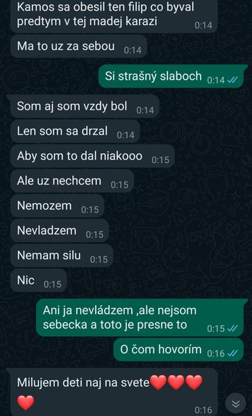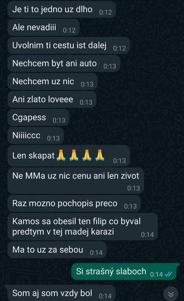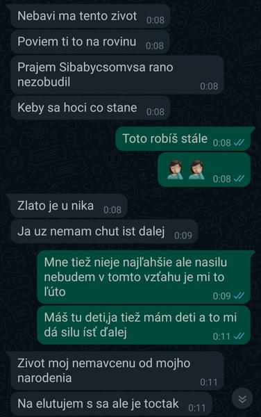 S manželom sa rozvadzame,už som si povedala stačí po 12 rokoch nefunkčného vzťahu a podala som o rozvod.. Sľúbila som sama sebe,že to ustojím,aj keď som vedela,že bude na mňa tlačiť z každej strany..Ako však vydržať taký silný nátlak,že si nieco urobí, lúči sa so mnou a deťmi...Na jednej strane mi je odporný a na druhej sa bojím,aby si niečo neurobil,deti by sa zbláznili.. prikladám aj pár screenov,gramatiku si nevšímajte,asi bol ožratý