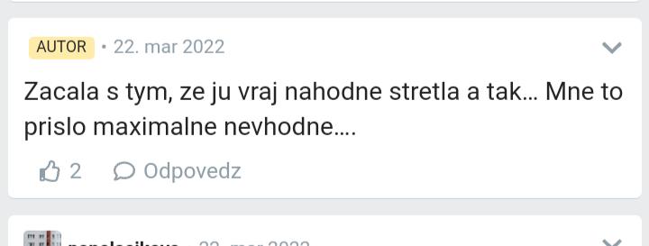 @veronikastrickova Ale čo je na tom iné. Bože tak sa tetuša opýtala na ex, veď asi ju poznala a len sa chcela informovať ale autorka kôli tomu nemusí urobiť problém ako svet. Chýba jej sebavedomie. Mala pekne jedným uchom dnu a druhým von a neskôr povedať priateľovi, že jej to nebolo príjemné. Akože keď kôli takejto blbosti vyskakuje a robí teátro, tak chudák chlapec to sňou bude mať ešte veľmi veselé...