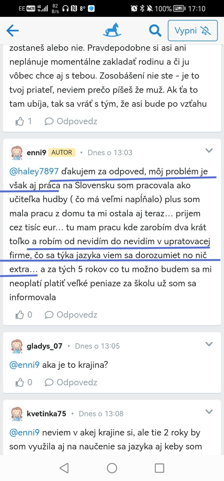 @haley7897, no ved... Nemaju na Slovensku prácu, bývanie a ani zázemie, ale ona chce a chce a chce.... Ja chápem, že nie každý chce zostať v zahranici. Ale keď tam idem na par rokov zarobit, tak makám. Na sebe, na jazyku, na plate, aby som zarobila. Ale ona len remca, krajina sa jej nepáči, práca ja nanič, sef je zly, na sebe pracovať tiez nebude, lebo sa jej to neoplati, proste ja byt chlapom a takáto partnerka ide naspat k mamičke dobrovolne, tak jej aj bonbonieru pre mamičku pribalim. Hlavne nech je šťastná a zostane tam kde je.