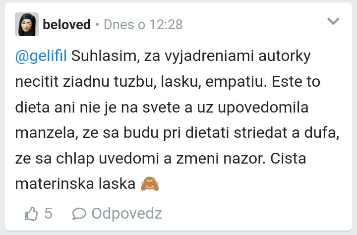 @zuzanockamt Ja som sa vyjadrila a spravne si dala screen k VYJADRENIAM autorky, nikdy som ale nikde nenapisala, ze svoje dieta nebude milovat