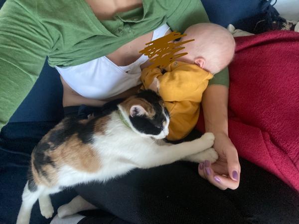 Mame 3 macky, a oocas tehotenstva sme si este osvojili psa🤦🏽♀️ Ziadny problem, jedna mica ani nevie ze mame dieta, druhy zvykne spat v detskej na koberci (pocas tehotenstav musel mazdy den spat aspon chvilu na alebo pri brusku) a najmladsia mica je ako pestunka... maly zaplace a bez so mno pre neho, ked kojim pradie a opiera si hlavu o maleho... nebojim sa nicoho, su ockavne, odcervene. Vyrastam s mackami cely zivot a nikdy som nemala alergie ani toxo