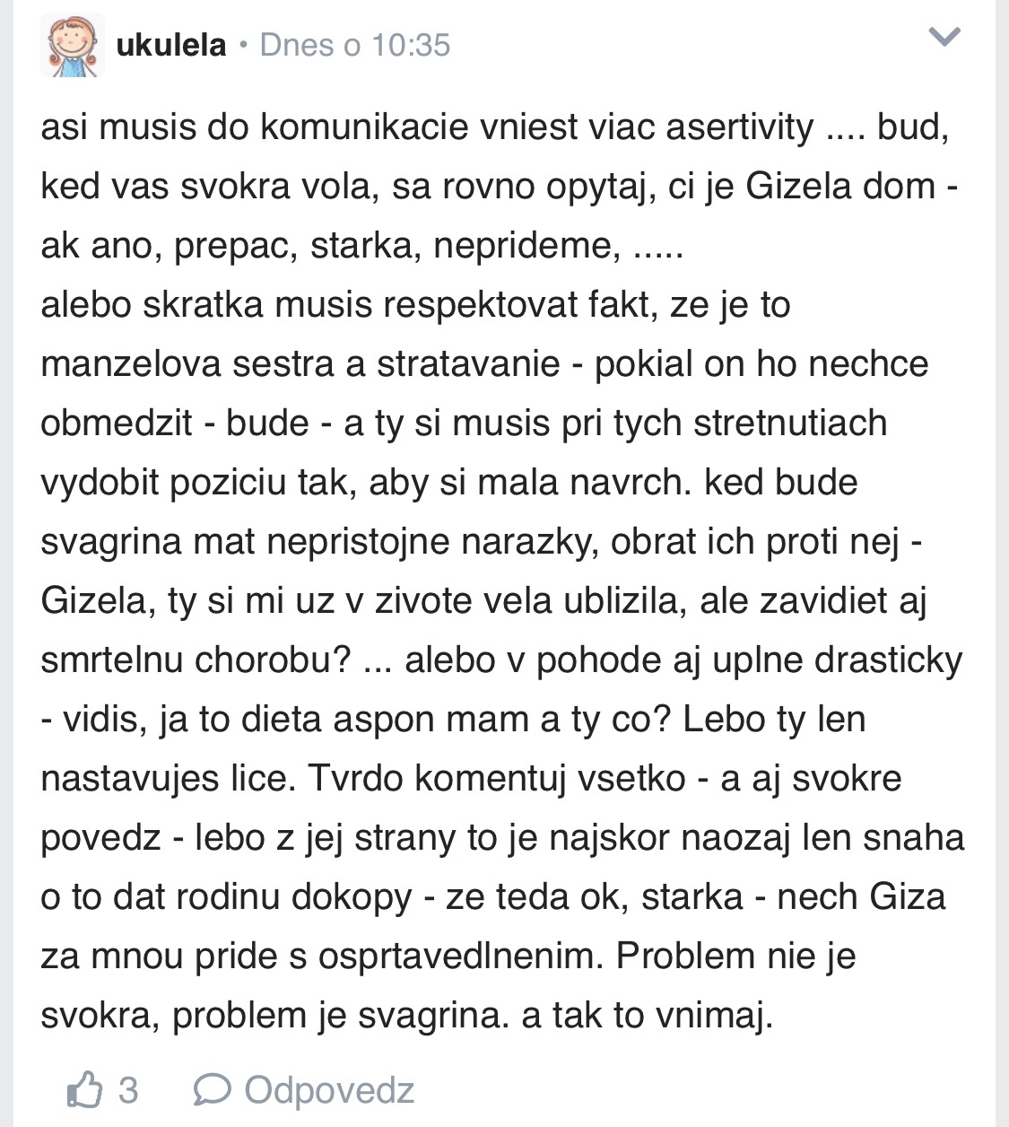 Mne pred rokmi svokra tiež povedala odporné veci. Nie som psychicky labilný človek, za akeho si tu žial bola označená a i tak to vo mne ostalo v nezabudnutí.