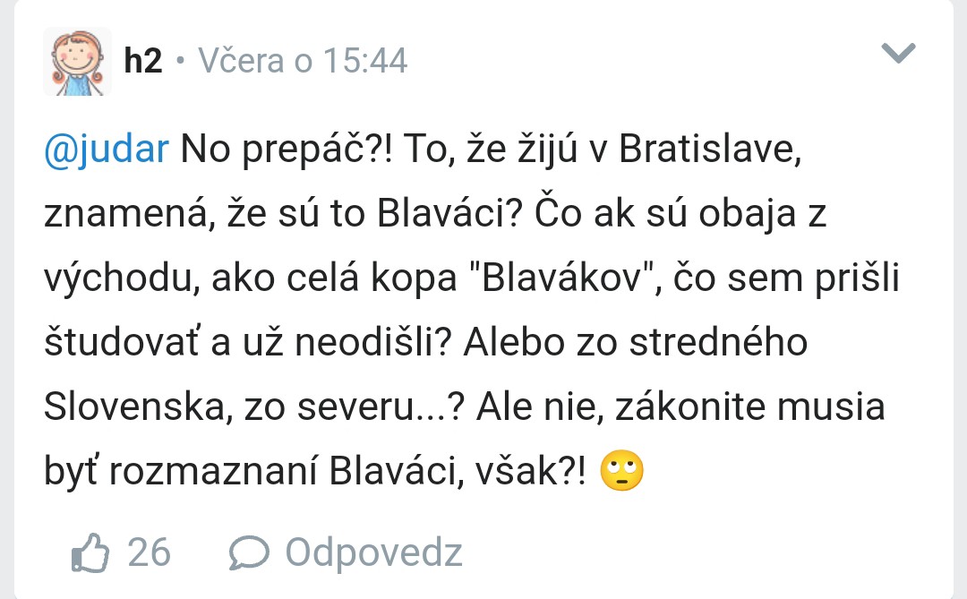 @h2 nezabudni, ze polovica tych blavakov su zase len vychodniari.