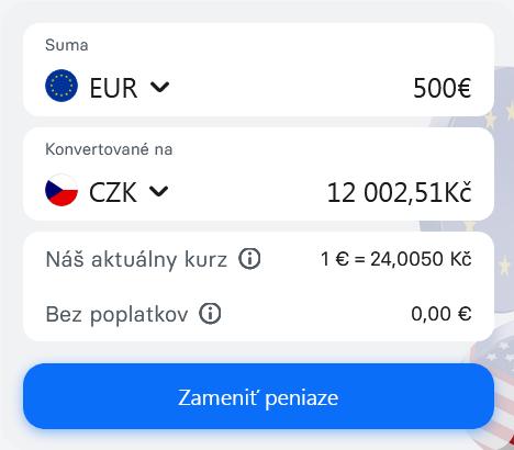 Keď budeš meniť € na CZK použi wise.com, majú takmer najlepší kurz.