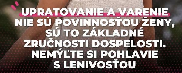 @anonym_autor tak tu mas koren problemu - “aby robil nieco v domacnosti za mna”. Velmi, velmi zly pristup a toto ste si mali vydiskutovat pred manzelstvom. Moj napr dnes uz upratal kuchynu, kym som spala a teraz spolu varime a ciskito pojdeme plavat.