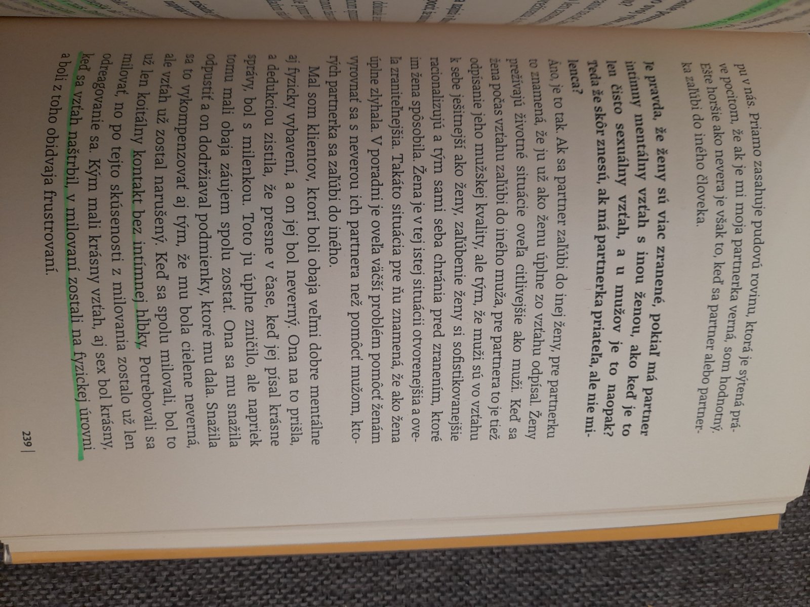 @marseillefan A jej manželovi vadí IBA sex, že ho nemá?! Ja by som po odmietnutí manželskej poradne a po takomto výroku tiež nechcela mať sex s ním už. Bol férový, lebo to oznámil priamo. Lenže zároveň sa tu narušila aj dôvera. Prečo? Predpokladám, že nebude jej oznamovať deň a dátum odchodu na privát. A keby ho niekto uvidel s cudzou ženou, no veď on bol priamy a korektný, nie?!