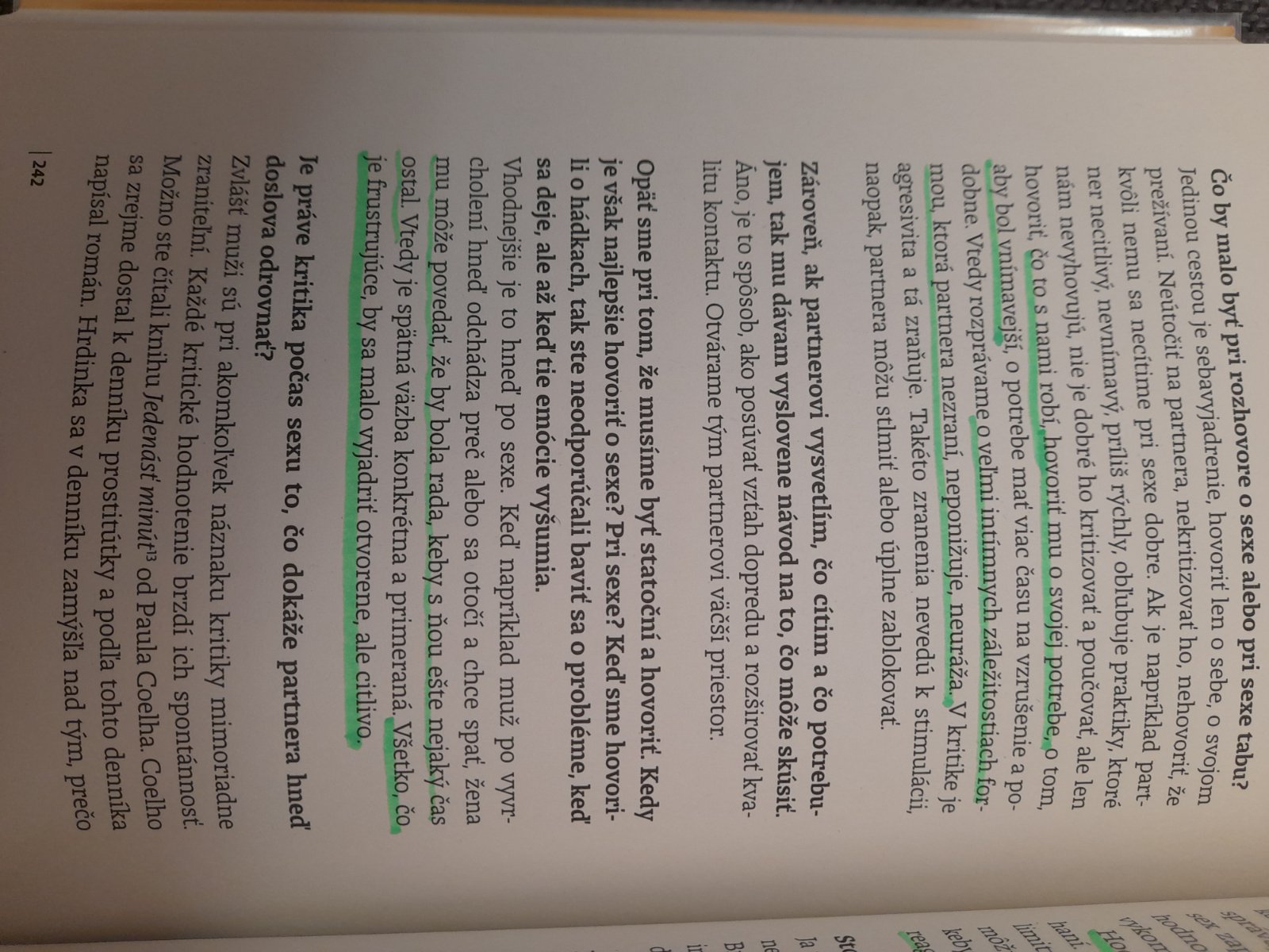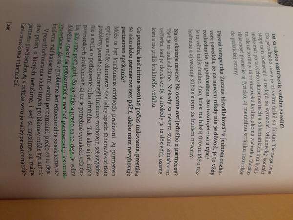 @stanulienkat To by sme už bavili o domnienkach a o tomto ja nerada diskutujem. Vyjadrila som sa k tomu, čo autorka písala, že sa dožaduje sexu a z pohľadu jej potrieb pre to nič nerobí.