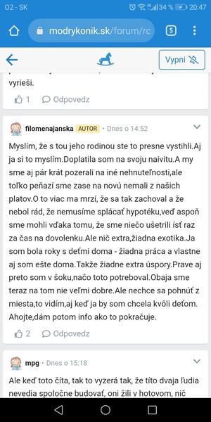 @panda21 ale ona tu píše o tom ako sa on nevedel pohnúť, že je unavená robiť vsetko aj za neho... Pričom tu neskôr sama napísala, že sa aj spolu pozerali, že čo by kúpili, ale nemali na to vôbec peniaze, keďže ona nerobila, boli z jedného platu. Samozrejme ze niečo platila, ale ja sa mu nedivím,ze mal toho dosť. Mne to z jej príspevkov príde z jej strany detinské. Vyhovára sa tu na to, že mu mali rodicia kúpiť niečo, že je z dediny a to v sebe nezaprie a asi nezvláda mesto...