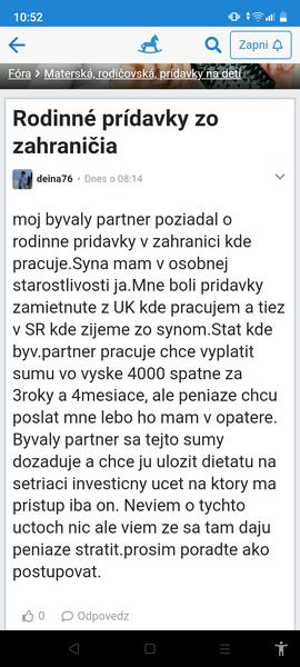 @karolinakr nezaujíma, lebo dieťa je nesvojprávne. A existujú tisíce rôznych situácií v rodinách, nedá sa to. Poisťovňa môže akurát tak ošetriť aby sa niekto neobohatil na úkor cudzieho. Ale v prípade vlastného dieťaťa sú ruky zviazané. Neviem či na toto existujú nejaké zákony. A podľa toho printscreenu vyššie ešte vidieť že ide o človeka kde aj keď to je zákonom ošetrené že pošle peniaze len oprávnenej osobe aj tak si to bude vynucovať aby to poslala priamo jemu. Pretože aj keď existuje účet na dieťa, kým nie plnoleté, s peniazmi disponuje rodič. Pokojne môže zrušiť sporiaci účet a zobrať peniaze deň pred osemnástymi narodeninami.