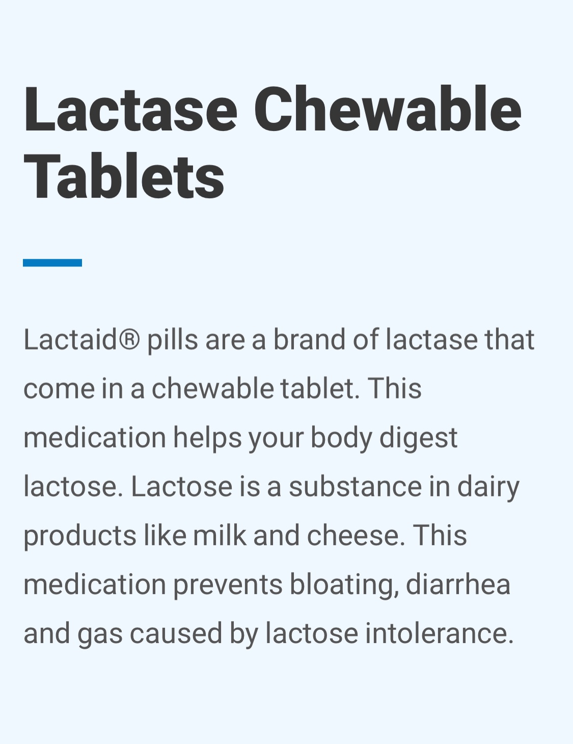 @sisaka tak máš zrejme intoleranciu laktózy teda mliečneho cukru. Na intoleranciu bielkoviny kravského mlieka tabletka neexistuje, ani bezlaktozovy výrobok ti nepomôže.