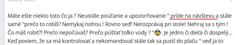 Máte ešte niekto toto čo ja ? Neustále poúčanie a upozorňovanie " príde na návštevu a stále samé "prečo to robíš? Nemykaj nohou ! Rovno seď! Nerozprávaj pri stole! Nehraj sa s tým ! Čo máš robiť?! Prečo nepočúvaš? Prečo púšťať toľko vody ? "🤯. Je jedno či dieťa či dospelý... Keď poviem, že sa má kontrolovať a nekomandovať stále tak sa pustí do plaču " veď ja to nemyslím v zlom, ale za nás to tak nebolo" a potom som ja najhoršia, že som niečo vôbec povedala.