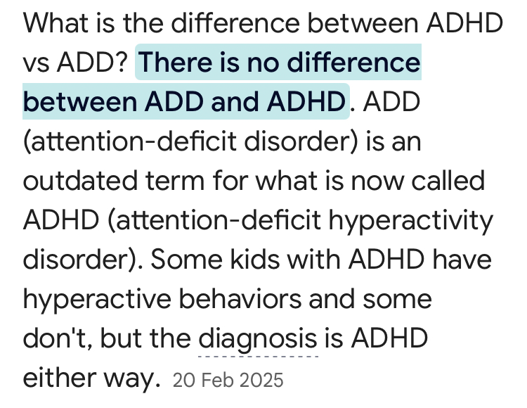 @zuzana76 ADD je vraj uz stary nazov. Uz to je ADHD. Lebo klinicky obraz je sirsi, ako hovoril stary nazov.