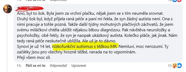 @sova7 Nemáš pravdu, stav dieťaťa treba přesně pomenovať podľa stanovenej diagnózy. Tam matky neriešia takéto malichernosti ako ty, tam si chcú poradit a podporit sa, preto to takto uvádzajú. Keď hľadám pomoc a podporu, musím vedieť veci správne pomenovať.