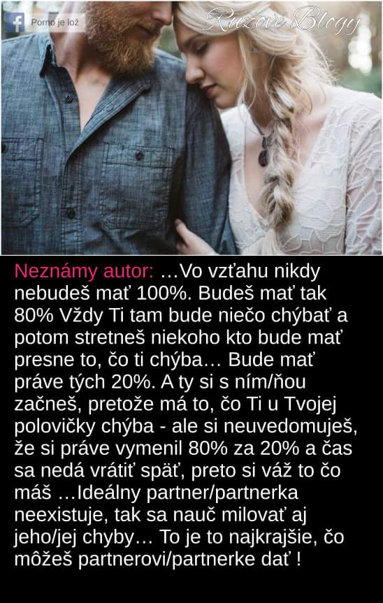 taktiez laska nie je o pocitoch, je to rozhodutie...ja som sa rozhodla milovat svojho muza po cely zivot, tak ako som si ho pred 6tymi rokmi brala..rozhodla som sa robit mu dobre veci po zvysok zivota, byt mu vernou a milujucou zenou... to iste sa rozhodol aj on, vratane vernosti... o tom je manzelstvo..!!! Nie ze kde vetrik zafuka a vidim nejakeho super borca..a uz palim za nim! Proste ROZHODLA som sa, ze aj ked mi do zivota pride iny muz, ktory bude stokrat lepsi, ze ja osrtavam pri manzelovi a plnim svoj slub...