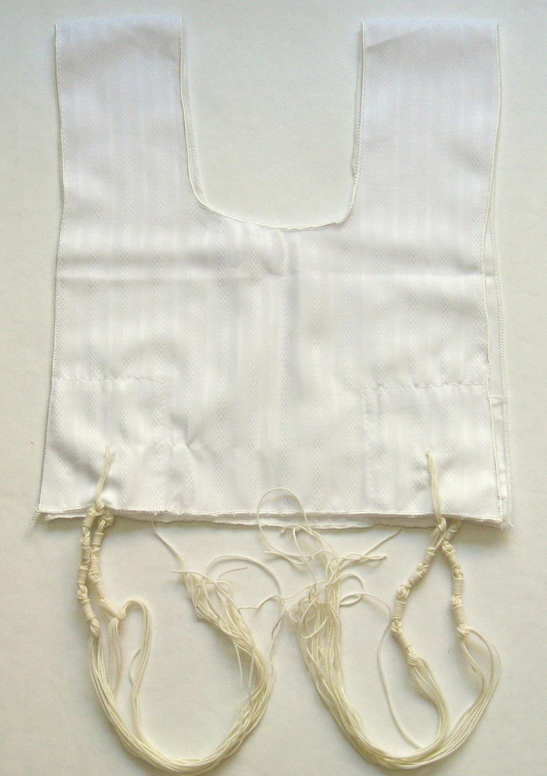 A ako vlastne zacal tento "sibnuty" myt? Teoria je ze to vzniklo z Tallit Katan - zidovska odnoz - maju spodne pradlo (undergarment - neznamena spodne pradlo... ale nieco co nosis pod satami skor), ktore vypada ako sheet - plachta s dierou. V realite to ide cez hlavu (mozno to sluzi ako pokryvka hlavy) malo by to takto vypadat...