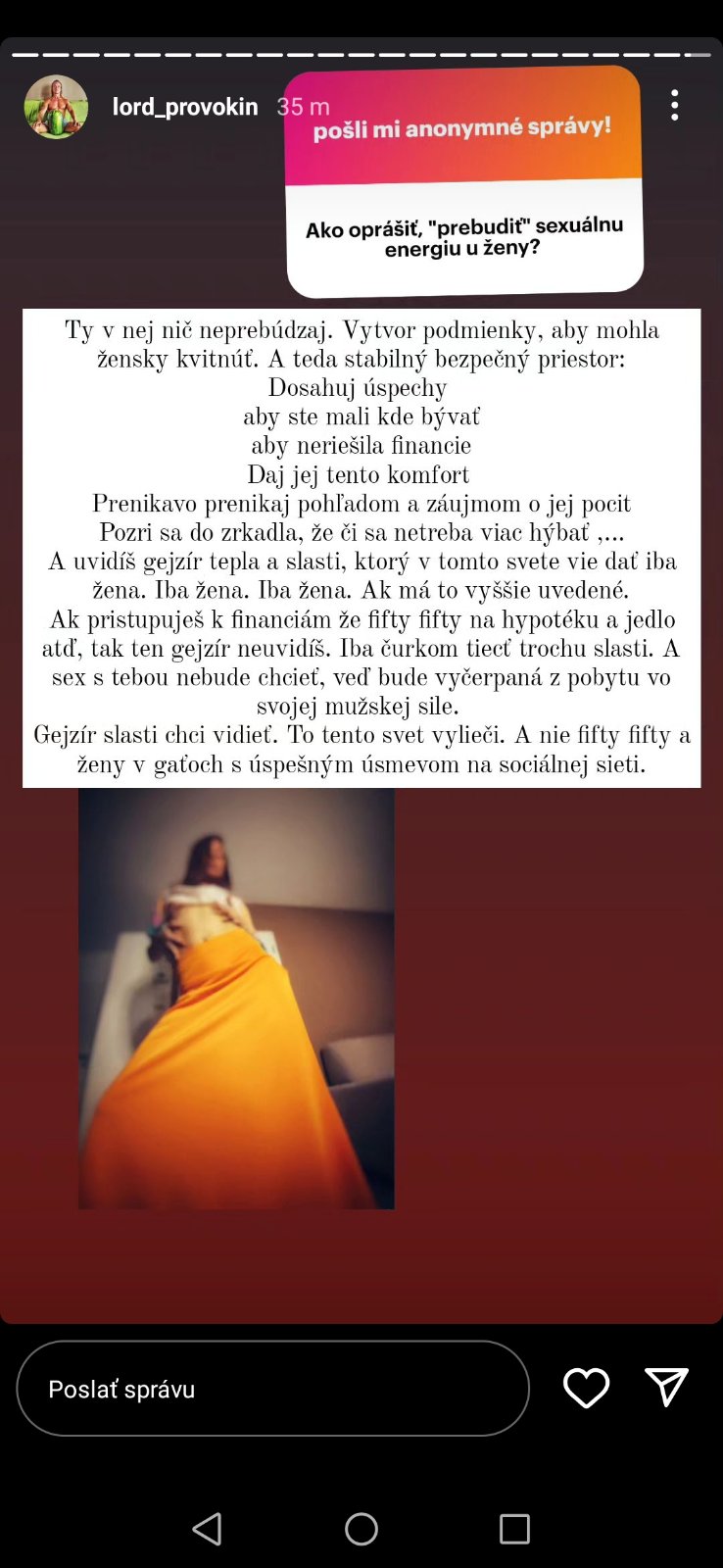 @zuzanockamt ....nieje to vymyslena téma normálne sa pýtam na názory ...a nie všade nefunguje to tak že stredobodom domácnosti je čistý sporak a trojchodove menu na stole ..žijeme v 21 storočí a by si sa čudovala koľko rodín takto žije že žena je doma a muž chodí do roboty ano veľa krát sa stane že nemá navarené noa ? Ma ruky v chladničke je chliebk pomazánka ...a ano hnevá ma to ale aj ja som iba človek a tiež mám právo na oddych a čas mimo domu ...