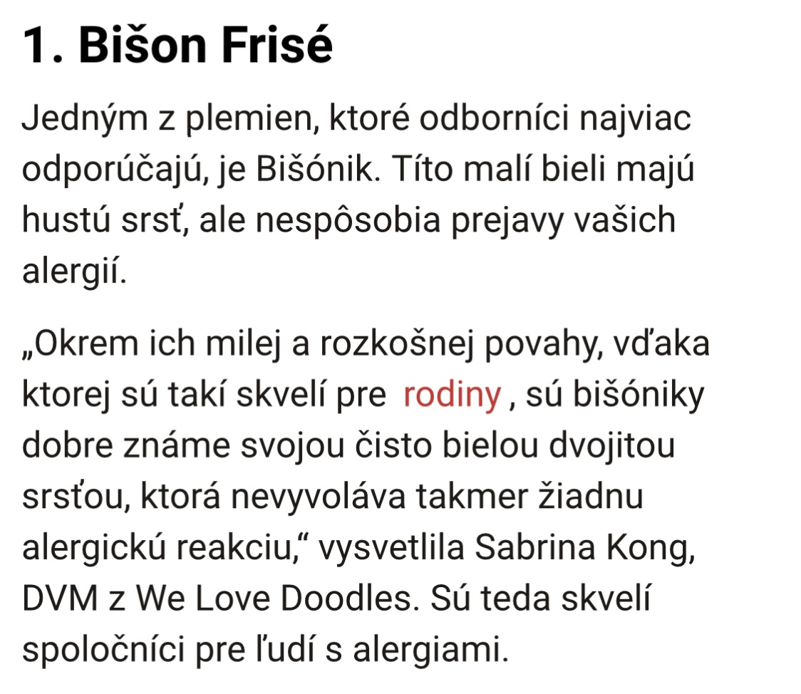 @tundra Neviem kto vam tieto sprostosti natrepal, ale nesirte to dalej😄To ze pes plzne menej neznamena ze je vhodny pre alergika. Uz som tu o tom pisala jeden komentar ako funguju alergeny. Srst NIE JE alergen. Alergenom su sliny, kozne supiny, potne a mazove zlazy, slzy, moc atd. Preto kratkosrste psy vedia byt pre alergika iritujuce este viac.