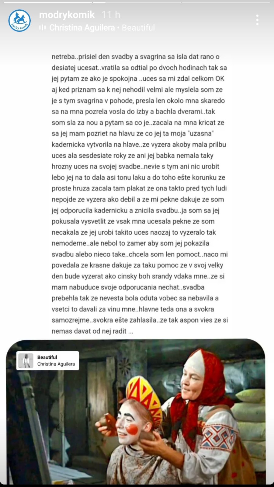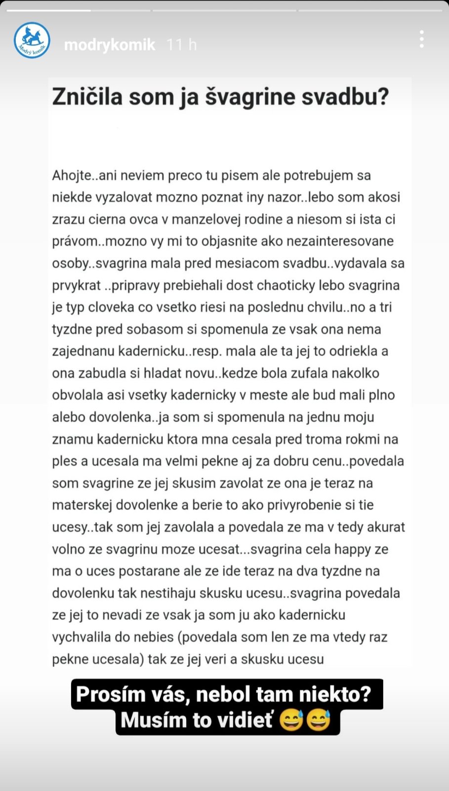 Len tak mimochodom, tvoja švagriná môže byť akurát tak všetkým na smiech že s takým výtvorom bola naozaj schopná prísť medzi ľudí. Veď je hádam svojprávna a má ústa, ktoré si mohla počas česania otvoriť. Aj keby som čumela celý čas do mobilu, aj tak by som cítila že niečo nie je celkom ok keď mi na hlave rastie akási veža.🤦🤷