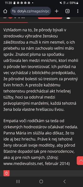@malary a ešte k tomu stredoveku,nie preto bol označovaný ako obdobie temna, že máme málo informácií o ňom, ale preto,,že vládla katolícka cirkev a tá všetko, čo bolo spojené s krvou považovala za špinavé a diablove dielo - preto zomrelo toľko žien za stredoveku pri pôrodoch,pretože cirkev nedovolila ku nim volať doktorov,len babice. Naštuduj si o tom prosím ťa niečo. A nakoniec mňa len zaráža koľko slobodných matiek sa hlási ku cirkvi a to nie je pre nich hriech priviesť dieťa na svet mimo manželstva?