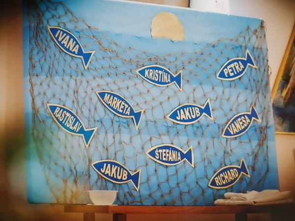 My sme mali veľké srdce, zvlášť chlapci, zvlášť dievčatá a na nich boli upevnené naše krstné košieľky.