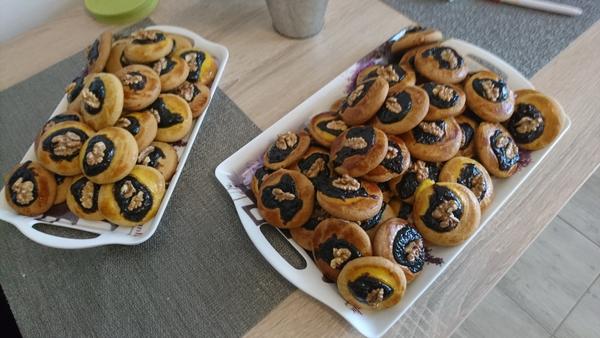 Pecieme malo lebo potom to len posuvame po susedoch nech sa toho zbavime.linecke, jablkova strudla a kokosove kocky tot vsio 🙂