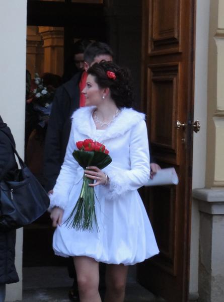 Mala som len svedkov a obrad bol na úrade. Mala som zelené šaty nad kolená z čias našich babiek a k tomu dobovo prislúchajúce topánky s remienkom.