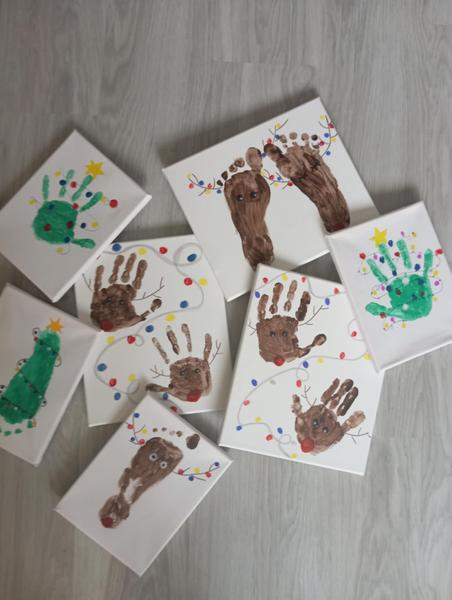 ja som minulý rok kúpila natiahnuté plátno na ráme v tedi. a otlačili sme im tam jeho ruky. tiež v tedi asi som kúpila taký tanier s prstovými farbami, takže to bolo také farebné :D a urobili sme si aj my také domov.