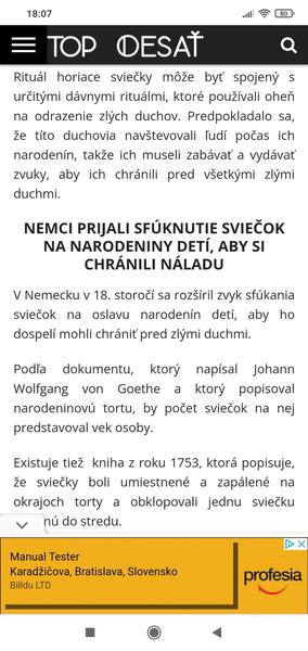 Ahojte, prišla som si po radu. Syn nedávno pozval kamoša zo školy na narodeninovú oslavu (klasika, stretneme sa ako rodina, torta, hudba, deti sa hrajú atď. ). Kamarátova mama reagovala, že v žiadnom prípade, oni že narodeniny neoslavujú, lebo je to "pohanský zvyk" a že sa nemajú ani sfukovať sviečky na torte - údajne, keby moje dieťa vedelo, čo to znamená, nerobilo by to. Zaujalo ma to, lebo som sa nikdy s takým niečím nestretla. Mama toho kamoša ešte odporučila môjmu synovi, aby si o tom niečo naštudoval. Ale neodporúčala zdroje. Tak sa chcem opýtať, máte to niekto podobne doma? Viete mi dať k tomu nejaké zdroje? Google ponúka len možné korene tradície sfukovania sviečok v starovekom Grécku na počesť nejakej bohyne, ale nenašla som nejaké "temné súvislosti". Vďaka za odpovede, prípadne odkazy.