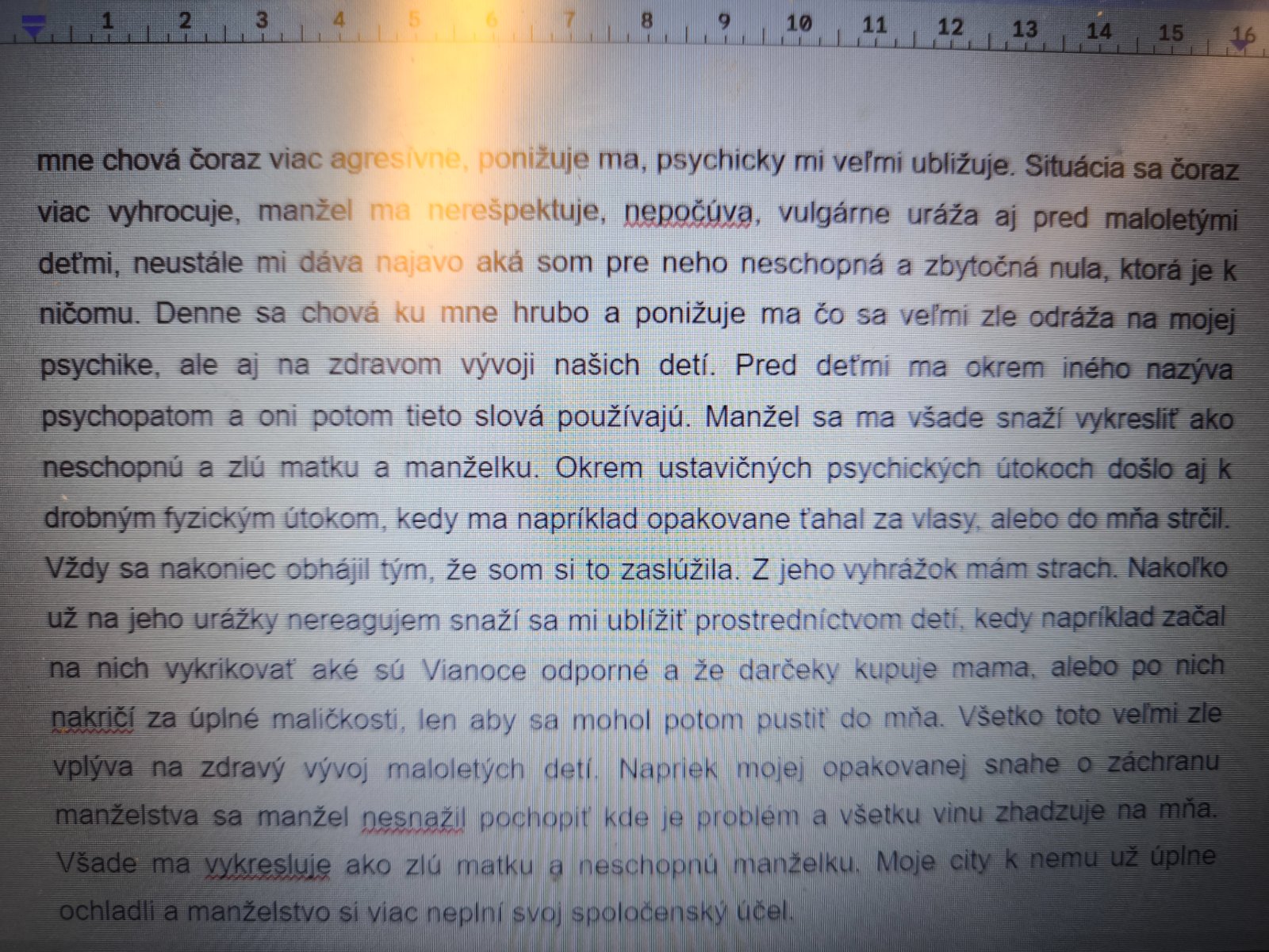 Odporúčam dopísať, keď som bola ja u právnika, že nemáte žiadne spoločne koníčky, záľuby. Poprípade ak sa ho deti boja aj to treba napísať. A na rovinu ti poviem. Odporúčam navštíviť právnika, mňa návrh vyšiel okolo 120€ a naozaj to bolo úplne inak napísané, akoby som napísala ja. Myslela som si, že aký drahý rozvod u právnika a prd. Hneď mi povedal, že určite by som mala zvážiť jeho služby, že rozvod víde do 600€ a rozvedú má na prvom sedení. Podotýkam, najlepší právnik z nášho širšieho okolia na rozvody.. chvála Bohu u nás stačil len napísaný návrh na rozvod a unormálnili sme sa obaja.
