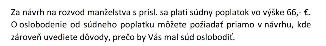 @maranco rozvod je za 100, 50 ak to podáš elektronicky. O oslobodenie od poplatku zjavne nežiadala.