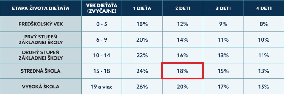 @barbie0209 Zhruba polovicu tychto mesacnych vydavkov. Ale opat, zalezi aj od Sudcu a dalsich okolnosti - posledne bolo u nas vyzivne upravovane pred 8 rokmi, syn chodi na tazku a ciastocne rodicmi financovanu skolu, a v neposlednom rade, prijem otca to dovoloval, pretoze to bolo v percentualnom vyjadreni menej, ako tych 18% (https://www.justice.gov.sk/aktualne-temy/minist...)