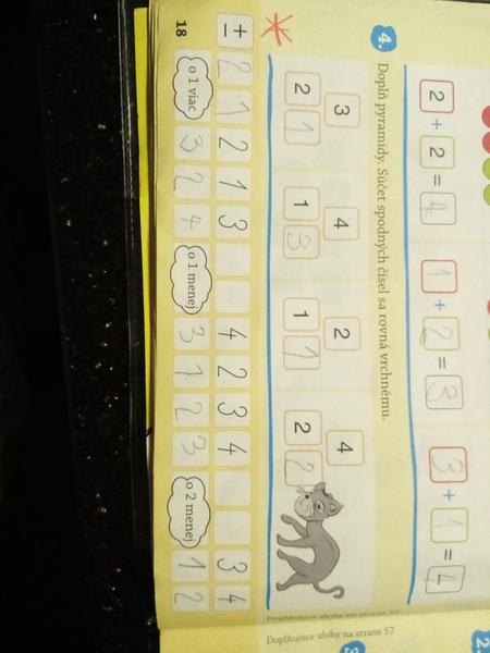 @veronikuskars no nemaju konretne napisane znamienka. Tak ako som opisovala, ze cislo 4 a 2 menej. A maju to len do 4.vyssie cisla este nepreberali. Tak som sa mu to nejak snazila vysvetlit s farbickami a prstami, lebo inak by som tu ulohu spravila za neho