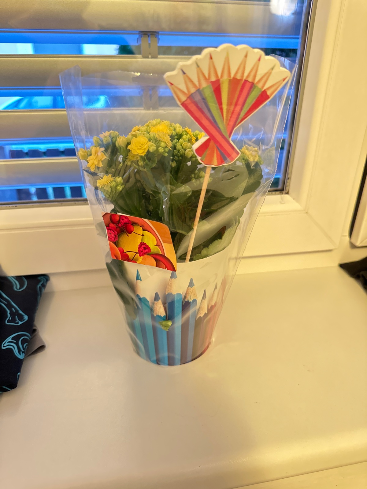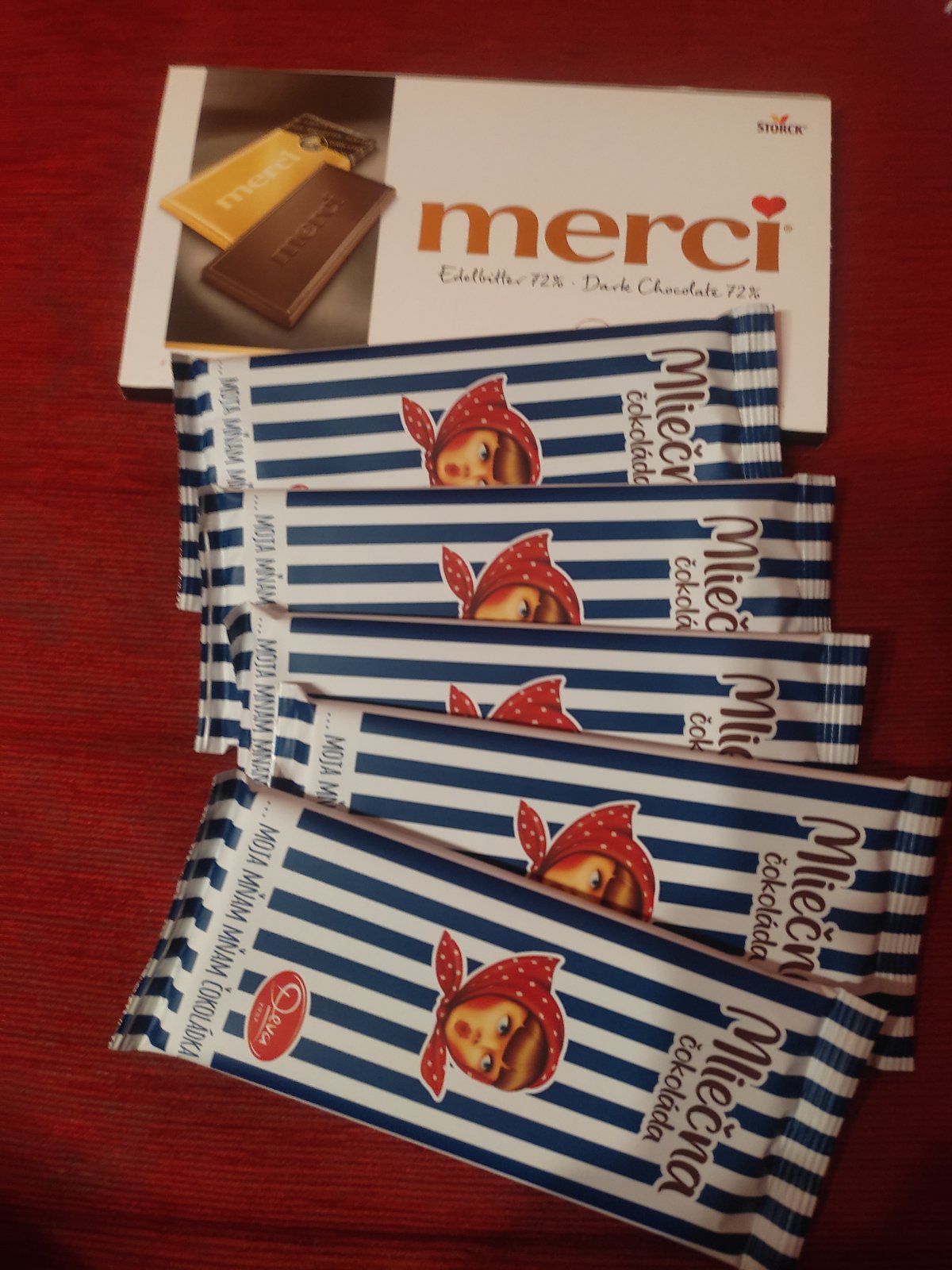 Syn berie do skolky bonboniere ucitelkam. Chcela som kvetinku, ale nevyzerali cerstvo v kvetinarstve, tak cokolada bola jasna volba 🙂