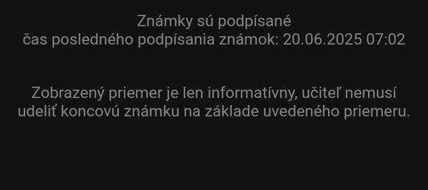 Pri známkovaní sa nehodnotí len priemer známok. Berie sa do úvahy aj to, ako dieťa pracuje na hodinách, či sa zapája, aký má prístup k učeniu, ako zvláda učivo a celkový vývoj počas roka. Aj keď priemer môže vychádzať medzi dvomi známkami, konečnú známku určuje učiteľ na základe komplexného hodnotenia – nie len čísel.