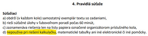 Úlohy na Pytagoriáde sú takého charakteru, že ak sa ukáže, že je potrebná kalkulačka, s istotou v niektorom predchádzajúcom kroku došlo k chybe.