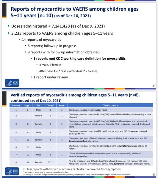 @duratlicka Vaers je databáza, kde sa hlásia len podozrenia a nie preukázatelné veldajšie ucinky vakcín. V populácií existuje urcitá prevalenicia ochorení napr. aj zapal srdca. Ked zaockujete 5 mil. detí,niektore budu mat zapal srdca a mali by ho aj bez ockovania. A táto pocetnost sa nezvýšila ockovaním. Takže si to totálne zle interpretujete, žiaden 2 percentá detí nemá po vakcine zápal srdca.