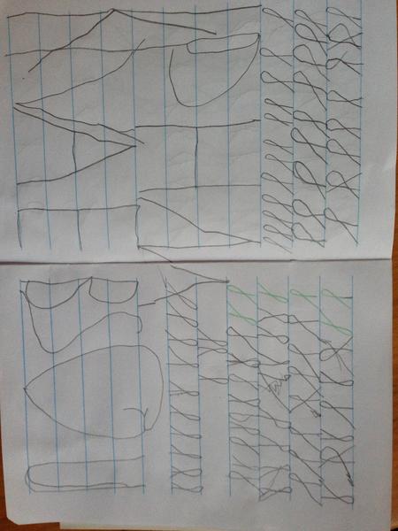 však to nemá také hrozné, syn písal lastovičky podobne ... ale jeho nebavili čiary, lastovičky, on bol nastavený, že sa budú učiť písmená a toto mu pripadalo ako hlúposť. Písmenká potom vyzerali lepšie.