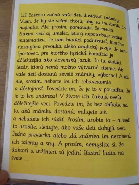 Tvoje dieťa asi nedostalo do zrkadielka ten pekný a múdry text na žltom podklade od učiteľky, že? Dievčatá možno budú vedieť a hodia ti to sem. Prosím uvedom sa kým je čas, lebo nie dieťa bude potrebovať doučovanie, ale ty psychológa!