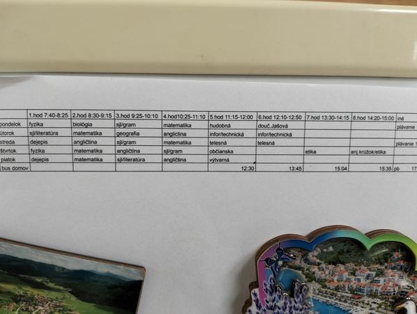 Moj je siestak toto je jeho rozvrh . Pozerala som a zdá sa mi to dosť vyvážené . Ale im sa ešte prvý týždeň vedel zmeniť . Ini rodičia nenamietali ? .