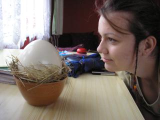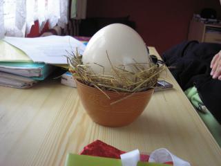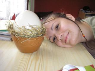 No a hej...Ivet dostala pštrosie vajce, tak som sem dala aj foto, ako sa večer robila praženica 😀 Baby...1,5kg vajca!!! Sme to skúmali a vyskúmali sme, že to bolo ako 24 normálnych vajec 😀 😀