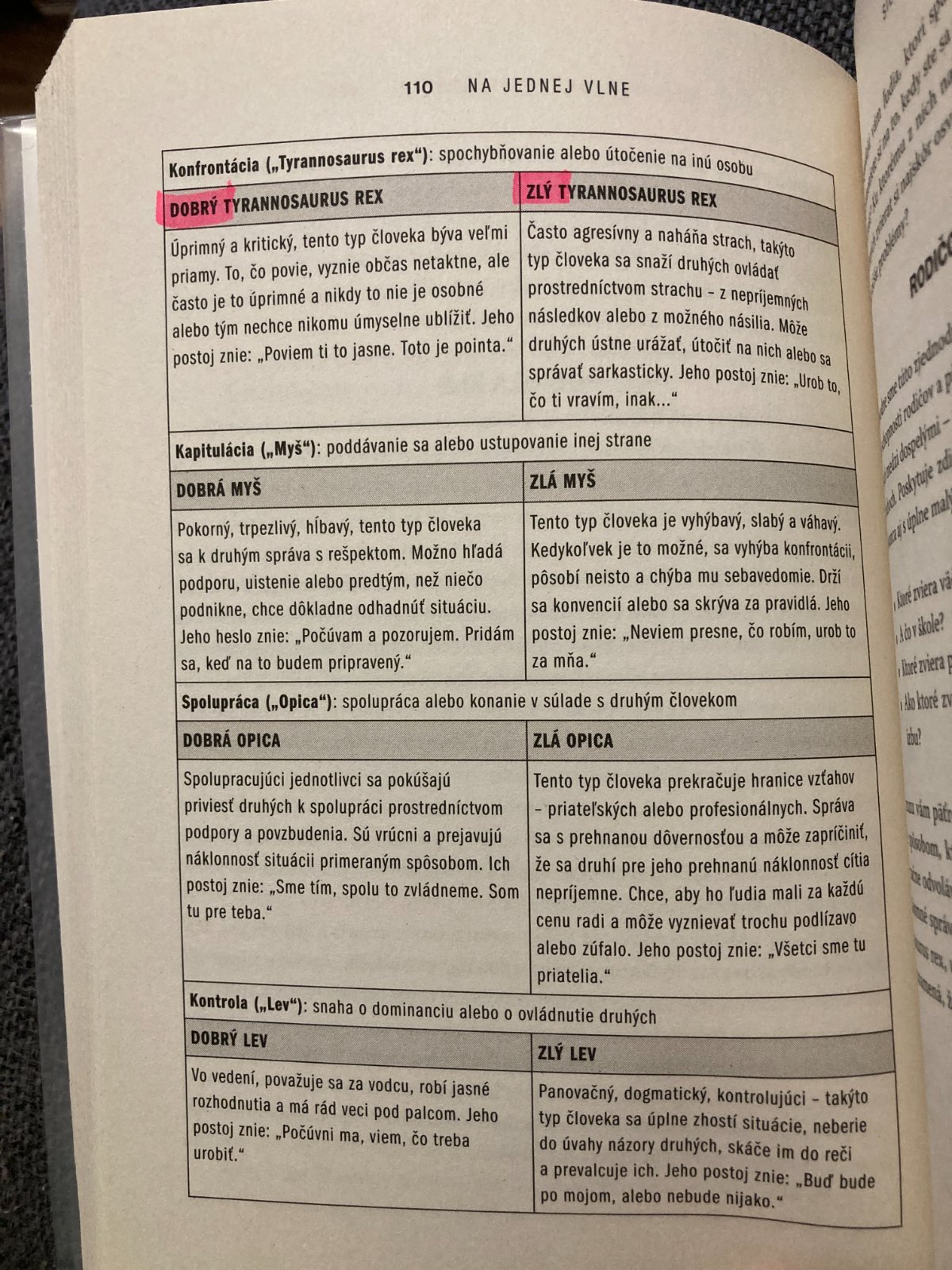 Tá psychologická kniha, tam sú rozoberané 4 komunikačné typy, s tým, aby človek bol schopný používať každý z nich, tiež sú tam príklady.