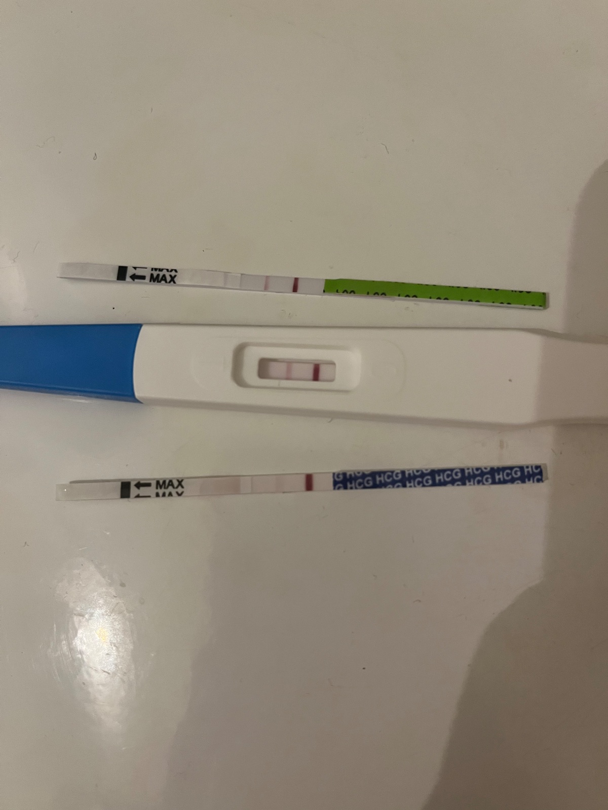 Baby a co si myslite o tychto? Jeden den po vynechani MS- dva mi pridu pozitivne ale ten dolny baby top test mi pride velmi zvlastny…