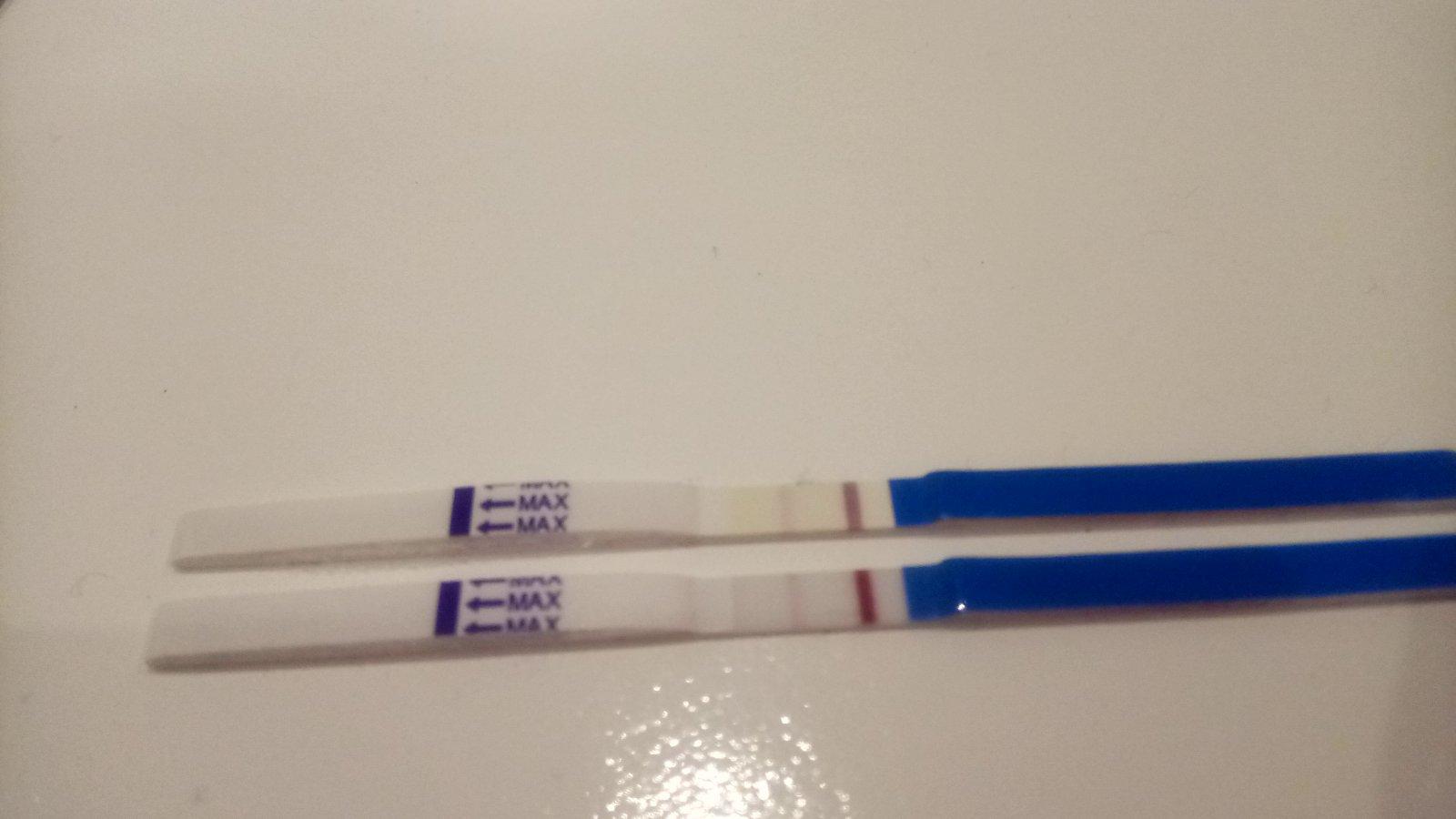 Progesteron som vysadila v nedelu ako vždy po 10-tich dňoch, vrchný test je z včera večera, spodný dnes ráno