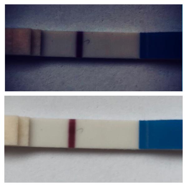 Dobrý deň , chcem sa opýtať , pred menštruáciou som mala testy negatívne ale potom prišla s 3 dňovým meškaním a s úplne slabými bolesťami čo u mna neni zvykom pretože mávam fakt silne bolesti , teraz je menstruacia slabá a konči ,dnes je 3 deň čo ju mám, ale dnes je 10 dni od styku kedy sme to mohli urobiť , teraz som si urobila tehotenský test ale nie z ranného mocu , pridávam 2 fotky jedna je neupravená a druha upravená , chcem vedieť či na testoch vidíte aj niečo vy 😊