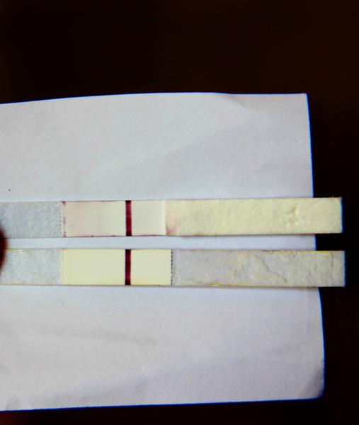 prosím vás, horný test je z dneška poobede a spodný zo včera (na oboch foto). Nie je to len rozpitá farba? Je tam rozdiel? Lebo neverím vlastným očiam a stále si nie som istá, i keď vnútorná intuícia mi vraví, že je tam 👶😍👏❤