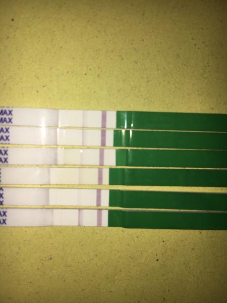Naozaj myslis???🙂 velmi si ma potesila. Pred cca 8-10 dnami mi ukazal ovu takto podobne, skusala som od 13DC a boli slabulinke, potom trosku silnejsia, a teraz po tych 10dnoch zas silna, skusim aj dnes cez obed🙂 tehu test som mala negativny vcera poobede, no som len 28DC a mrchu mam dostat az 32-34DC 🙂 prikladam fotky ovu testov, ktore ked u mna nereaguju su v takejto intenzite. Uplne spodny test je zo vcera, silny oproti zvysnym.