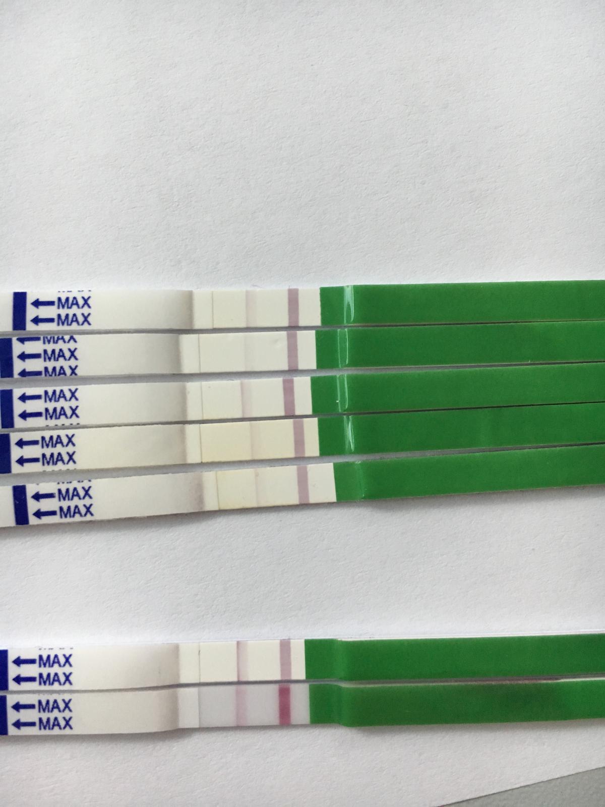 Ahojte, tak skusala som ovu test zase, je tmavsi ako byval, ked som nemala ovulaciu. Druhy zdola je vcerajsi (27dc) a ten uplne spodny je dnesny (28dc). Viem ze nie su pozitivne, no su tmavsie, preto mam pocit, ze sa s mojim telom nieco deje. Mam biely vytok dnes, celkom silny. Podbrusko ma boli ako pred ms. No mam ju dostat az o 6dni cca. Co myslite?