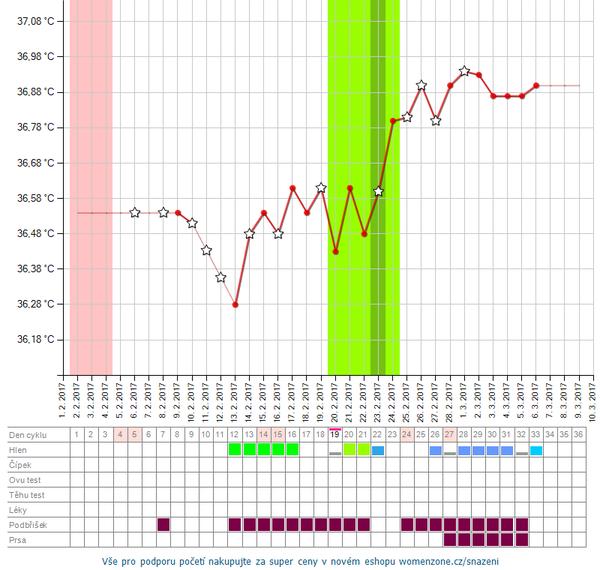 Baby, ako som došla dnes domov, tak ma začalo škriabať v krku a akoby som bola chorá, také pocity, zima, tak som si ľahla, potom som si zmerala bt a že 36,61 čo by mala byť k večeru ešte vyššia a ráno som mala ešte 36,9... snáď sa neblíži mrchaňa jedna... ale inak mne bt klesá až prvý-druhý deň mrchy... prikladám aj graf... inak mohlo sa stať, že tým, že tu je celkovo nejaká zima v byte, že sa to odrazilo aj na mojej bt? v tomto sa teda nevyznám