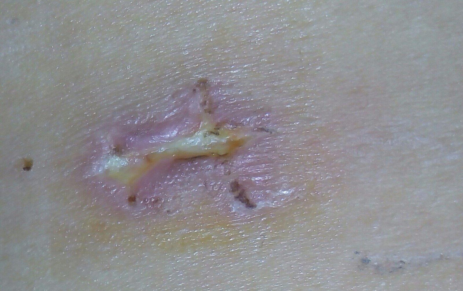 Baby moje prepáčte za trocha hnusnu foto ale neviem čo s tým robiť..Toto je moja rána po laparke, očividne mi dr vybrala stehy skôr ako mala..Po týždni..Ale už od stredy ich nemám a pozrite čo mi to zasa robí 😲😲 ešte včera som tam mala chrastu,ale po osprchovani sa mi urobilo toto..Polovička mi to celé vyčistila a zalepil sme to..Dnes som to odplepila a je to ešte horšie ako včera a leukoplast bol celý omokvany..Čo s tým??Som už z toho nervózna 😖😖 neviem či je to hnis alebo tkanivo 😕