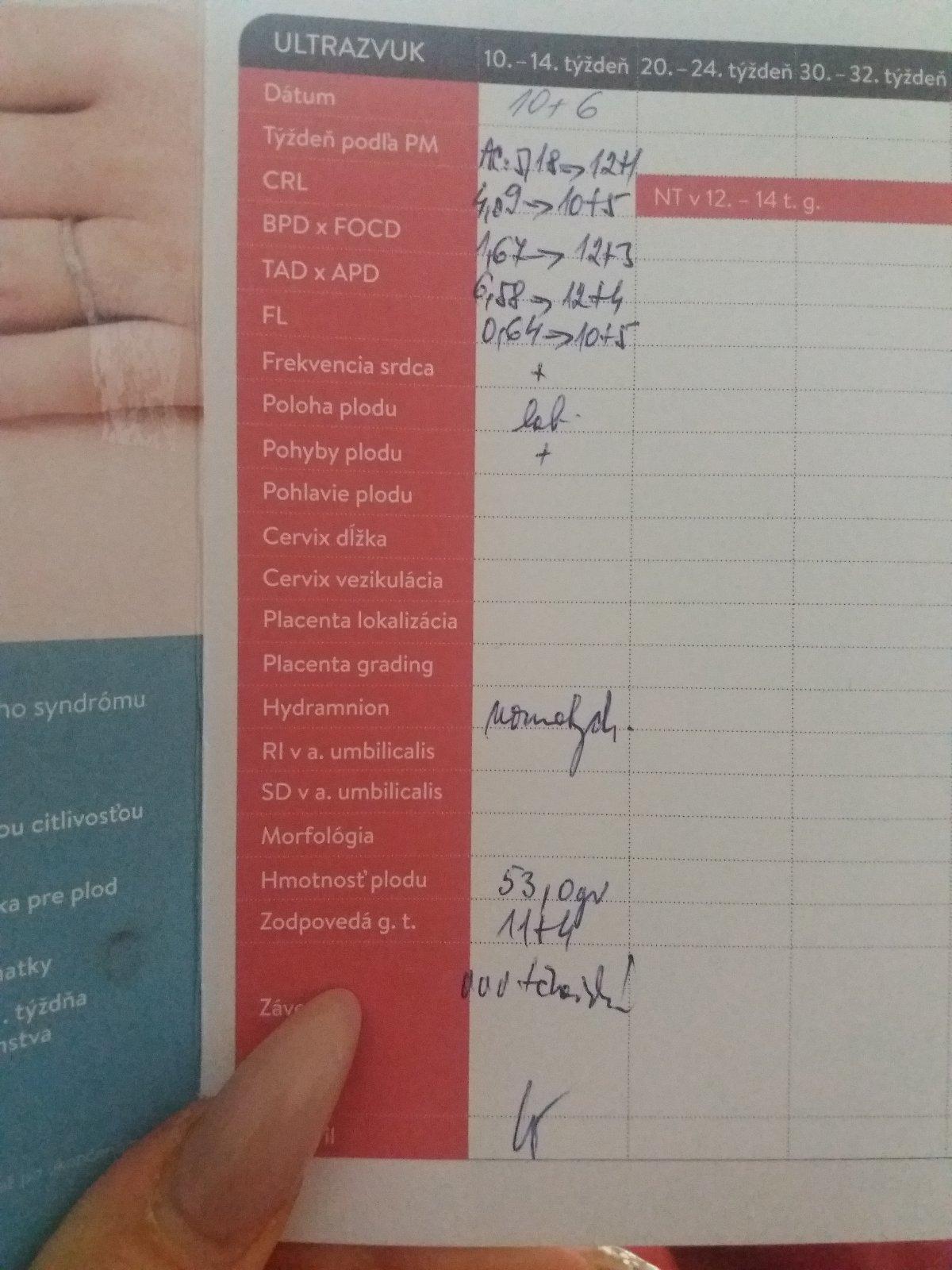Babulky az teraz som si vsimla v tehotenskej knizke zaznamy co pisala doktorka.. nie je 53 gramov vela na zacaty 12 tyzden? Co myslite?